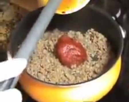 Soğan kıvama gelince, kıymayı da ilave ederek karıştırmaya devam ediyoruz. Kıyma kavrulduktan sonra 1 çorba kaşığı da ilave ederek üç dakika salça ile kavurmaya devam ediyoruz.